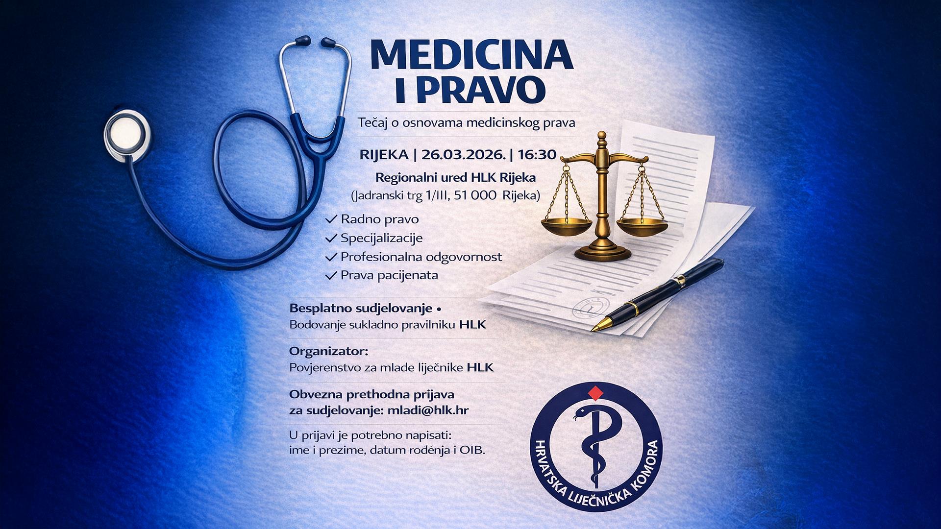 Tečaj osnova medicinskog prava prvenstveno je namijenjen mladim liječnicima, naročito onima koji su završili studij medicine 2025. godine i počinju raditi bez obveze pohađanja pripravničkog staža.